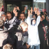 Havalimanında aktivistleri çok sayıda kişi karşıladı. Ellerinde Türk ve Filistin bayrakları ile aktivistleri karşılayanlar, Filistin'e destek sloganları attı.