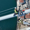 Deniz seviyesinden en yüksek noktası 165 metre olan köprünün halatları üzerindeki işçilerin zorlu çalışması havadan çekilen görüntülere yansıdı.