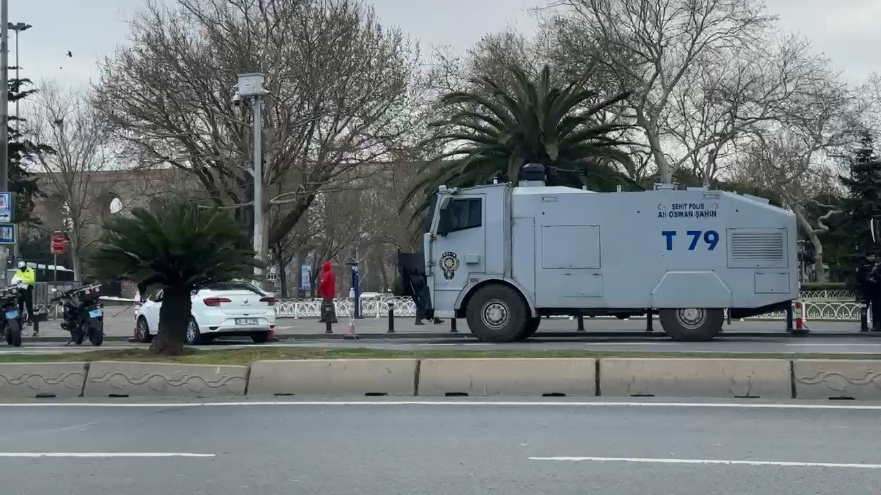 Saraçhane çevresindeki caddelerin trafiğe kapatıldığı görülürken polis ekipleri hazır bekletiliyor. (DHA)