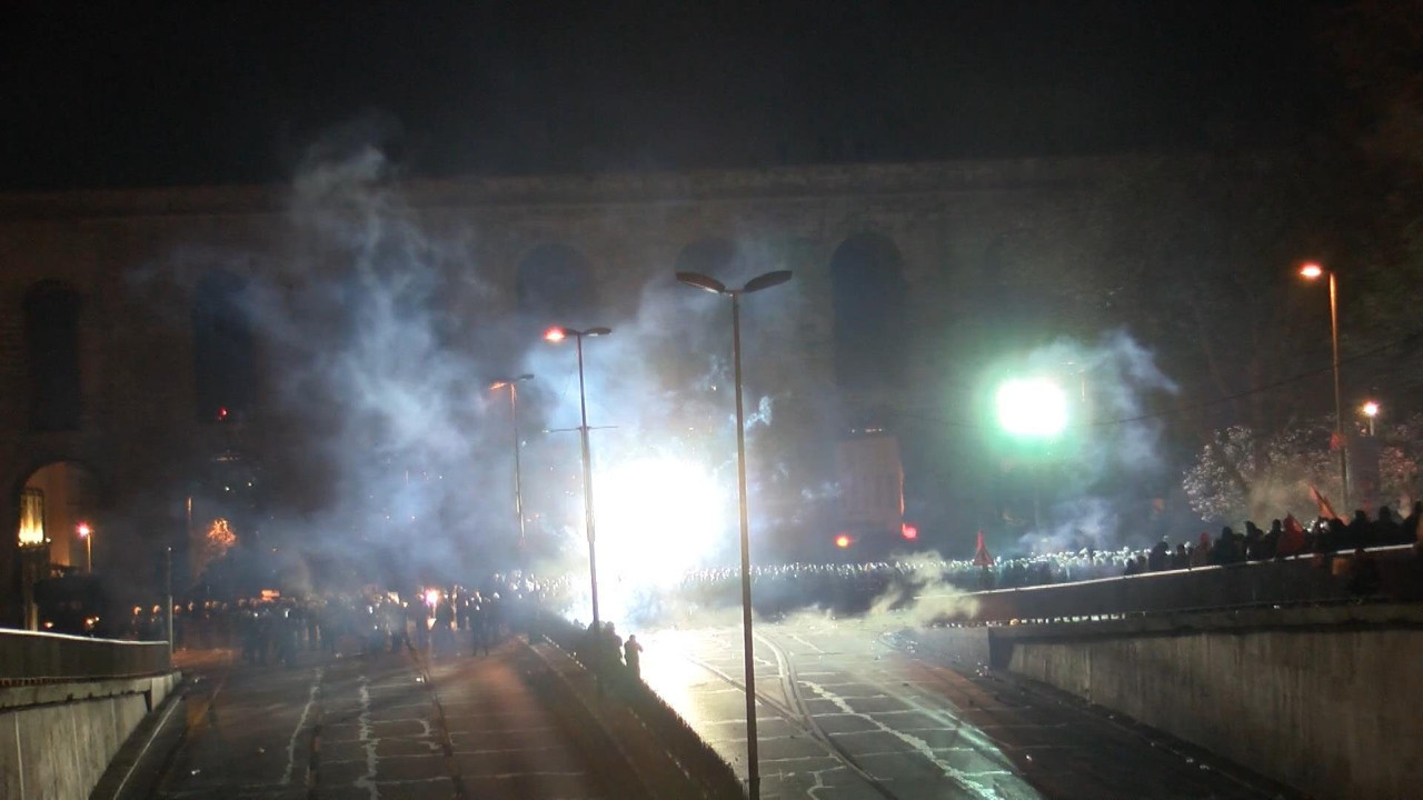 İstanbul Cumhuriyet Başsavcılığınca başlatılan İBB'ye yönelik 'terör ve yolsuzluk' soruşturmalarını protesto amacıyla Saraçhane'de Bozdoğan Kemeri önünde toplanan grup, güvenlik önlemi alan polis ekiplerine meşale, şişe ve yanıcı madde attı.