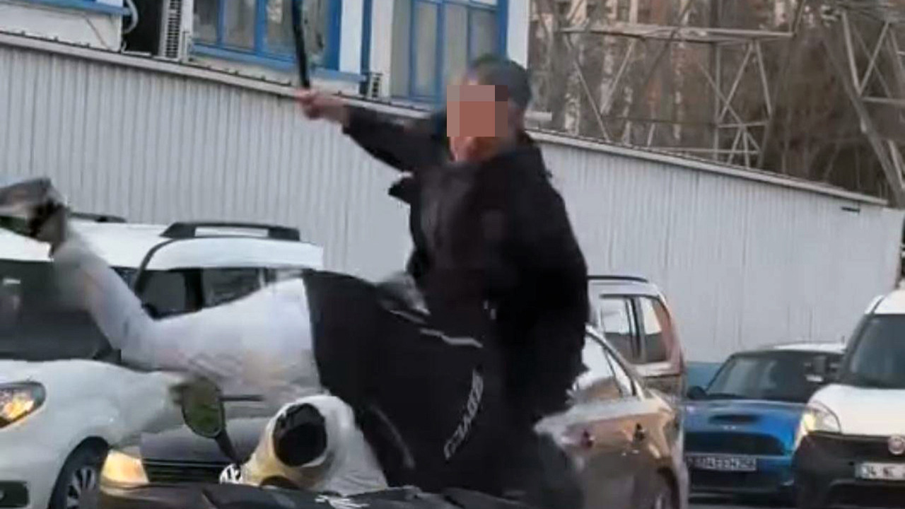 İstanbul Eyüpsultan'da otomobil sürücüsü yol verme tartışmasında arabasını yumruklayan motosikletli kuryeyi copla darbetti. O anları diğer sürücüler cep telefonu kamerasıyla kaydetti.