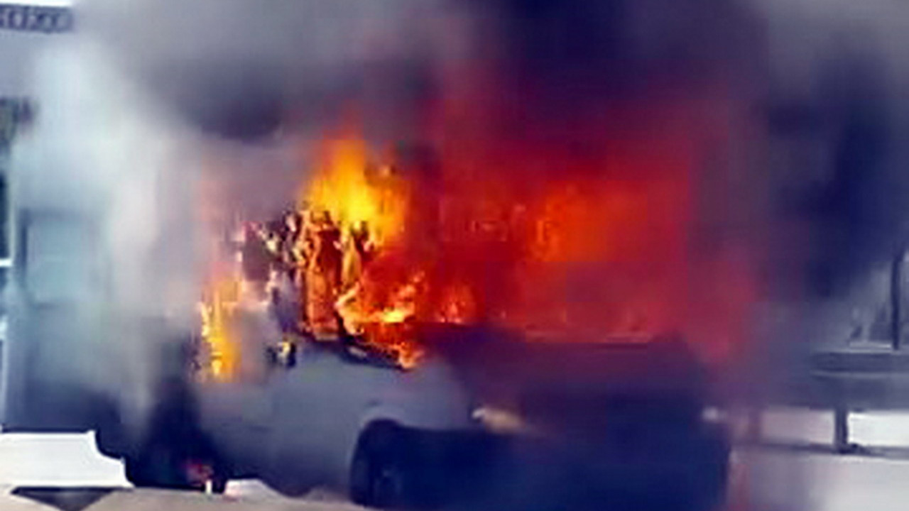 İstanbul trafiğinde korku dolu anlar: Minibüs alev alev yandı