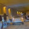 Gruptakiler, tünele geldiklerinde araçlarını durdurdu. Bir süre tüneli trafiğe kapatan grup, yüksek ses müzik eşliğinde oyun oynadı.