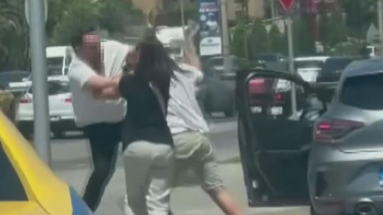 Kavgayı ayırmak isteyen bir kadın da yumrukların hedefi olarak yere düştü. Taraflar çevredekilerin müdahalesi ile ayrıldı.