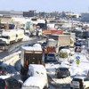 İstanbul Hadımköy'de 2 gün önce kar yağışı sırasında yollara bırakılıp hala alınmayan araçlar nedeniyle ulaşım güçlükle sağlanıyor.