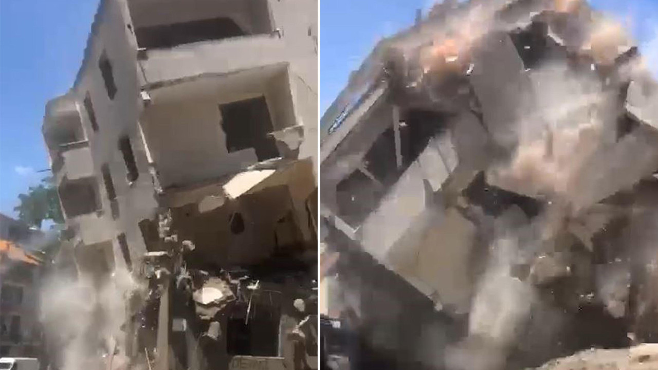 İş makinesi operatörü ve çalışanlar kaçarak binanın altında kalmaktan son anda kurtuldu.
