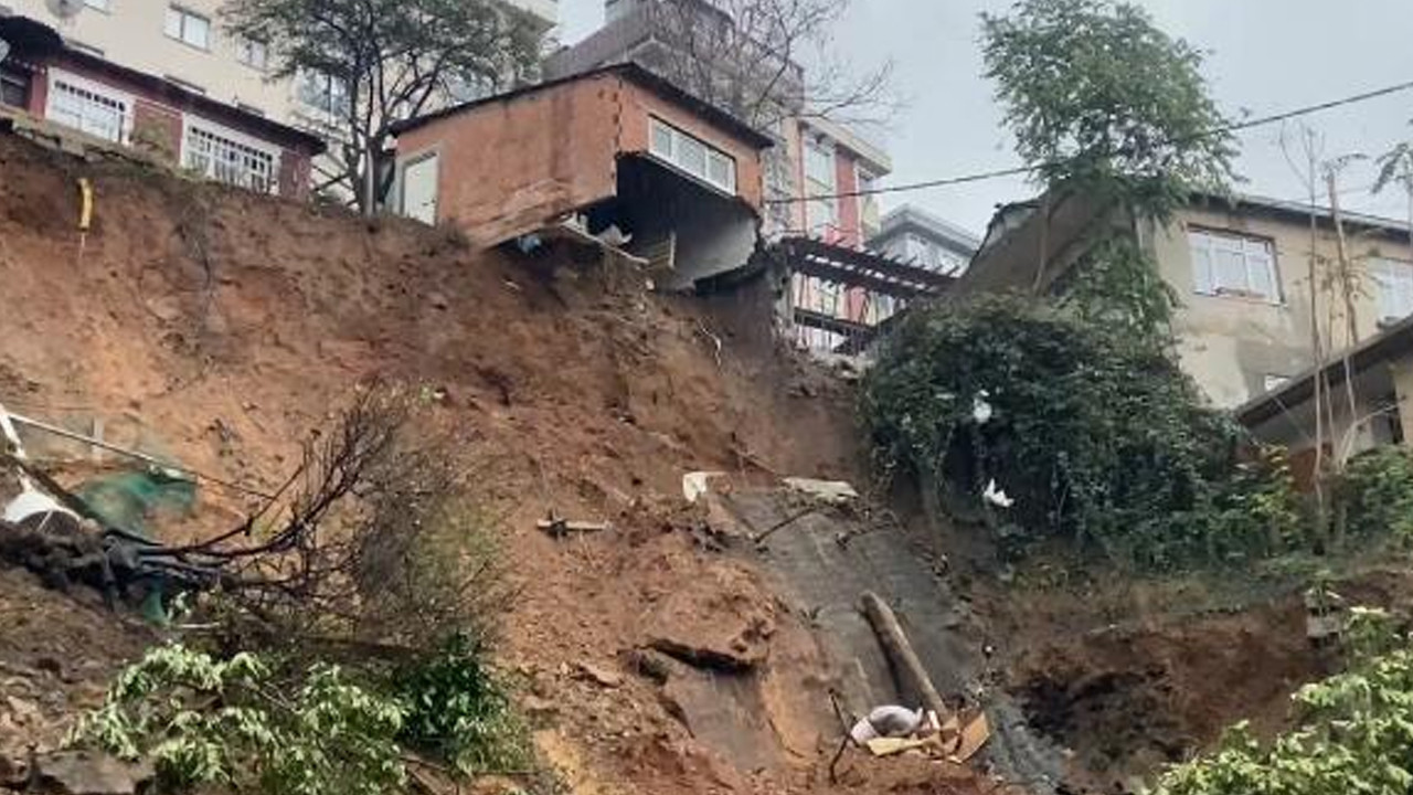 İstanbul Eyüpsultan'da istinat duvarının çökmesi sonucu bir gecekondunun yarısı yıkıldı.