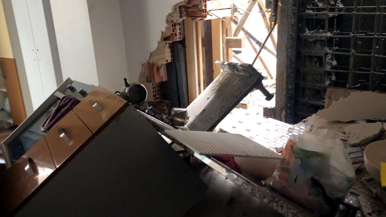 O sırada mutfakta bulunan yaşlı bir kadın savrulan dolap ve tezgahın altında kalmaktan şans eseri kurtuldu.