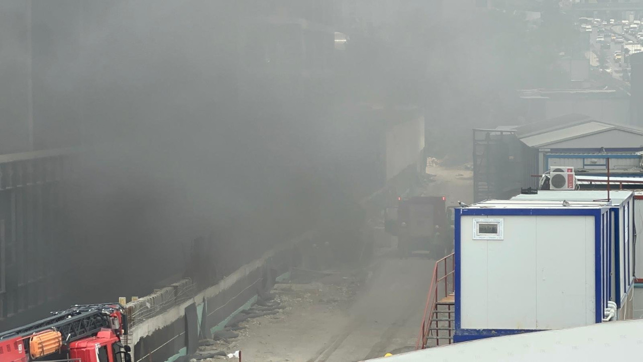 İstanbul Ataşehir'de inşaat halindeki binada yangın çıktı. Yangın nedeniyle bitişiğindeki D-100 Karayolu’nu duman kapladı.