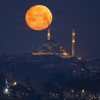 İstanbul'da dolunay, Fatih Camisi, Süleymaniye Camisi ve Yeni Cami ile birlikte görüntülendi.
