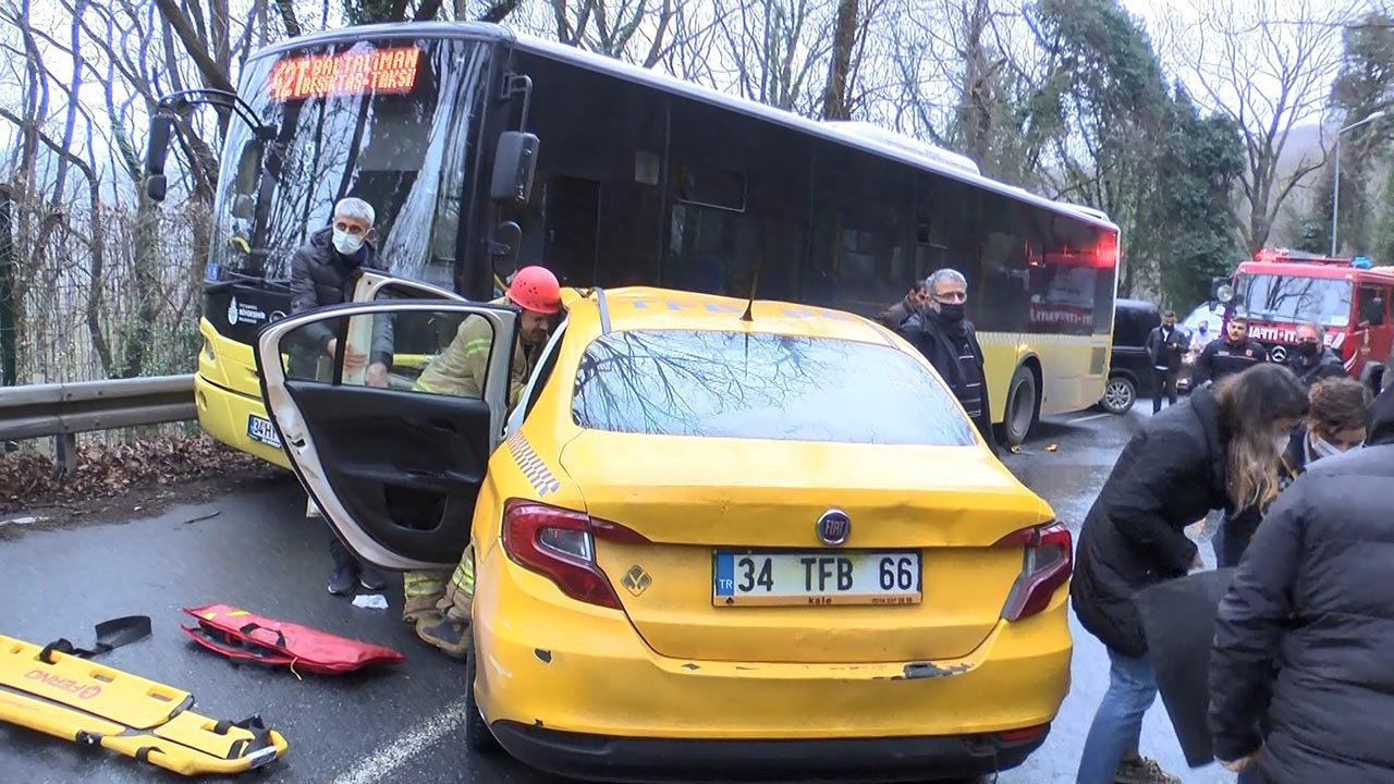 İstanbul Sarıyer'de taksi ile İETT otobüsü kafa kafaya çarpıştı. Takside bulunan kadın yolcu ile taksi sürücüsü yaralandı.