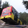 İstanbul'da freni patlayan belediye otobüsü bahçe duvarında asılı kaldı