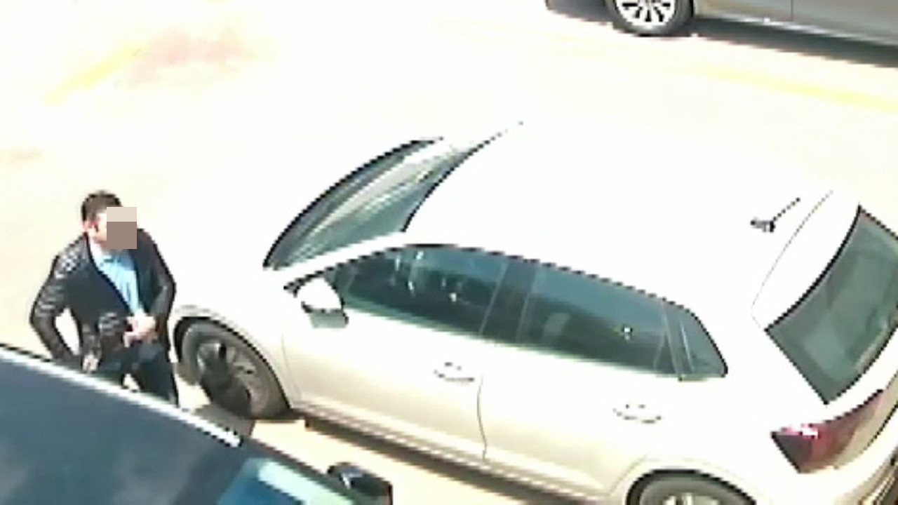 Görüntülerde mağdurun otomobilini park ettiği sırada beyaz renkte bir aracın içinde bulunan şüpheliler tarafından takip edildiği yer alıyor.