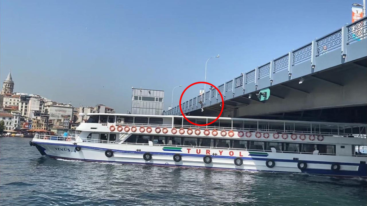 O genç bu kez akıl almaz bir çılgınlığa imza attı. Genç Galata Köprüsü'nden seyir halinde olan bir gemiye atlamak için plan yaptı. Korkuluklara çıkan genç, köprünün altından gemi geçtiği esnada üstüne atladı.