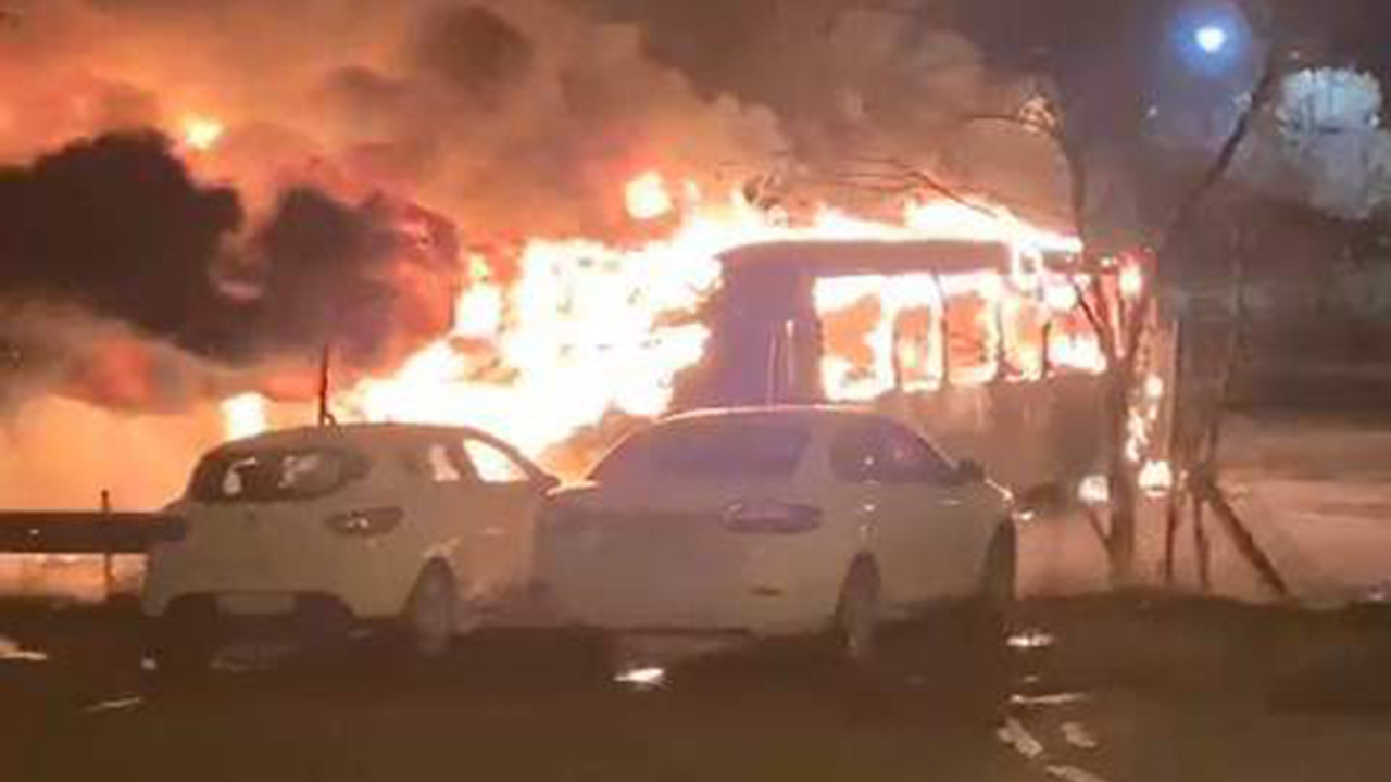 Bölgede devriye görevi yapan gece bekçileri otobüsün yandığını fark ederek itfaiyeye haber verdi.