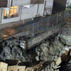 Beton duvar ve toprak parçaları, binanın bitişiğinde devam eden inşaatın temel çukuruna çökerken, bina sakinleri, panikle binayı boşalttı.