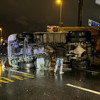 İddiaya göre, seyir halindeki bir hafriyat kamyonu, sağanak yağış nedeniyle kayganlaşan yolda sürücüsünün direksiyon hakimiyetini kaybetmesi sonucu kontrolden çıktı. Bariyerlere çarpan kamyon, yol ortasına devrilerek trafiği kapattı.