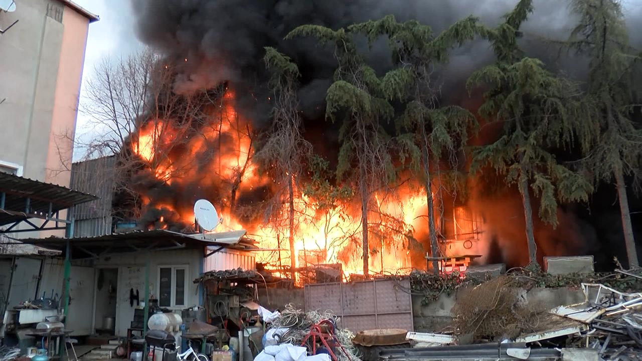 Görgü tanığı Ayhan Aydoğdu, "Polyester havuz malzemesi yapıyorlar. Yanıcı ve kimyasal maddeler var. İtfaiye ekipleri geldi. Söndürme çalışmaları yapıyor. Komşular dışarıya çıktı. Bizde görüp geldik. Alt tarafta bodrum var. Orada çıkmış yangın" dedi.