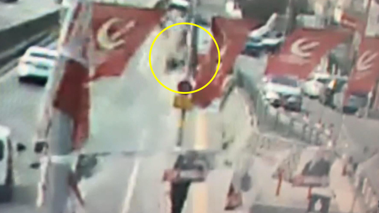 Kaza anı güvenlik kamerasına yansıdı. Görüntülerde, bir motosikletlinin yolda gittiği sırada kazanın olduğu ve toz bulutunun çıktığı görülüyor. Bir başka güvenlik kamerası görüntüsünde ise, yol kenarında duran otomobilin bir anda hareket ettiği, daha sonra da büfeye çarparak yola devrildiği anlar yer alıyor.