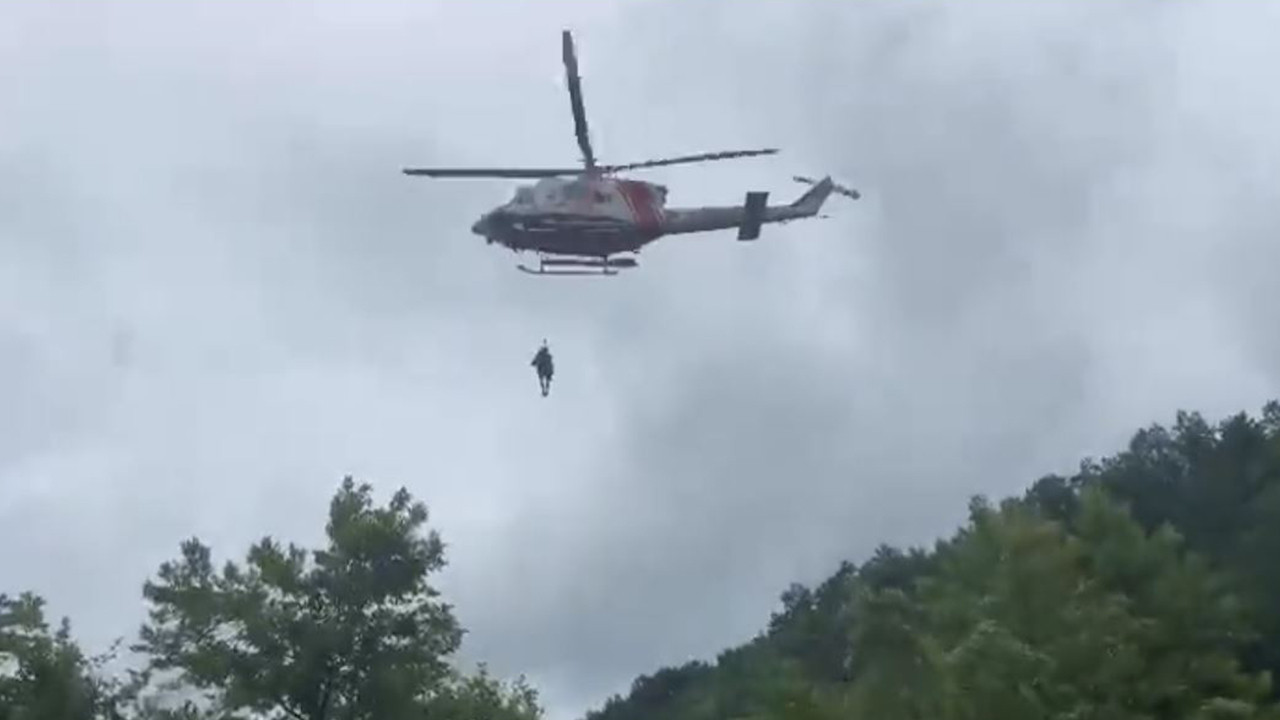 İstanbul Şile'de yağmur sonrası selde mahsur kalan iki kişi helikopter ile kurtarıldı.