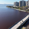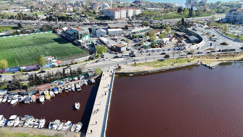 İstanbul'da Küçükçekmece Gölü'ndeki renk değişimi tedirgin etti. Gölün, denizle buluştuğu alanda su kırmızıya dönerken, yaşanan renk değişimi dron ile görüntülendi.