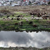 Temizlenmeyen dere çevresinde otlayan koyunlar da havadan çekilen görüntülere yansıdı.