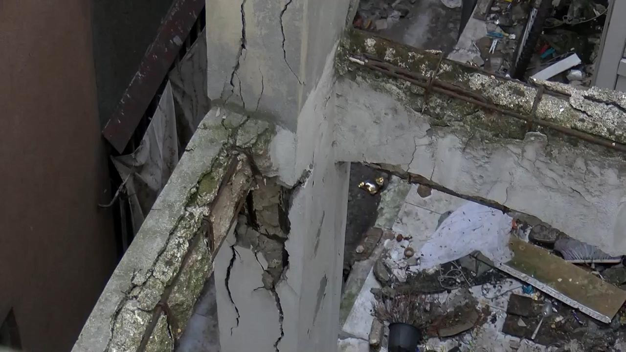 İstanbul Bayrampaşa'da 60 yıllık bir binanın dış cephesinde oluşan çatlaklar, dökülen beton parçaları ve çürüyen kirişler görenleri tedirgin ediyor. Bina sakinleri kentsel dönüşüm için başvuru yaptıklarını öne sürerken, belediye yetkilileri ise herhangi bir dönüşüm talebi gelmediğini öne sürdü.