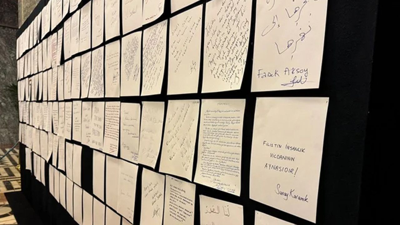Milletvekilleri, TBMM'deki Şeref Holü'nde kurulan panoda kendi el yazılarıyla, İsrail'in Gazze'deki saldırılarını kınayan mesajlar kaleme aldı.