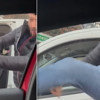 İstanbul Ataşehir'de bir sürücü, tartıştığı kadın sürücünün aracına tekmeyle saldırdı. O anlar kameraya yansırken, şüpheli gözaltına alındı.
