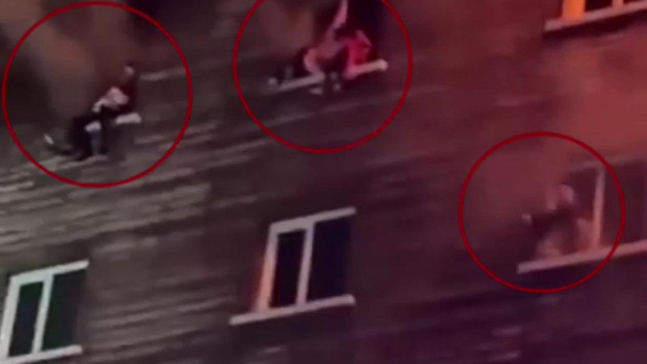 Alevlerin sardığı otelde mahsur kalan vatandaşların pencereye çıkarak yardım istediği görüldü.