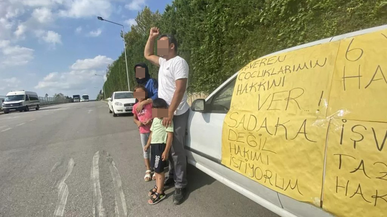 Kocaeli'nde çalıştığı fabrikada kendisine küfür eden bir kişiye tokat attığı için tazminatsız işten çıkarılan bir kişi eşi ve çocuklarıyla birlikte kovulduğu fabrikanın önünde eylem başlattı.