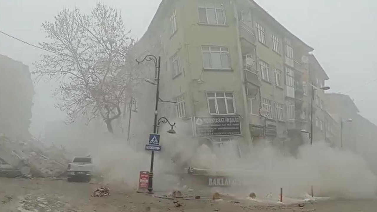 Kahramanmaraş merkezli 7.7 büyüklüğündeki depremde, Malatya'da 4 katlı bir binanın boşaltıldıktan sonra çöktüğü anların kamera görüntüleri ortaya çıktı.