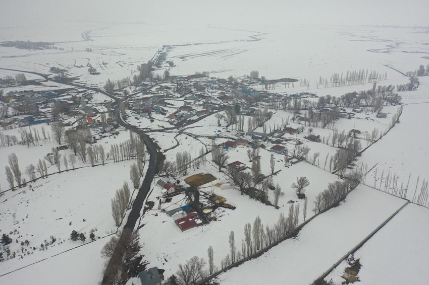 Kars'ın Arpaçay ilçesinde etkili olan soğuk hava ve kar yağışı yaşamı olumsuz etkiledi. Yoğun yağış sonrası karla kaplanan köyler dronla görüntülendi.