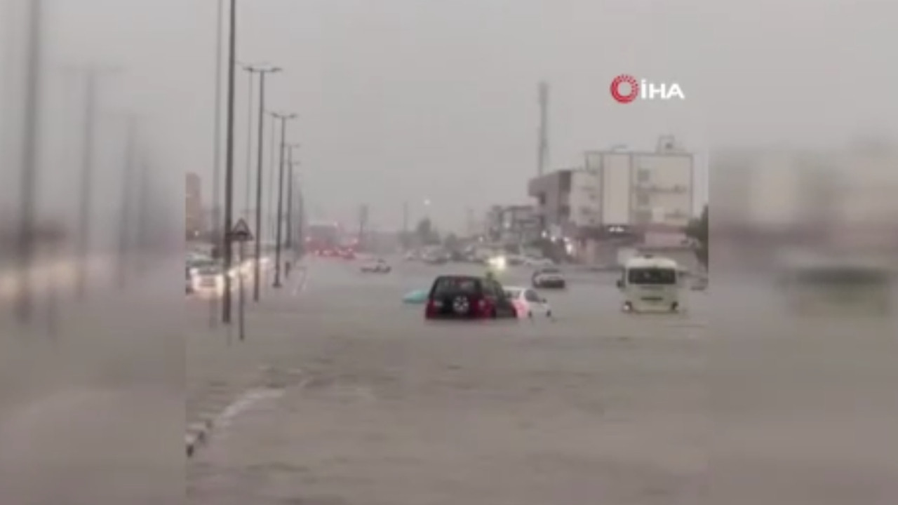 Mekke'de yollar göle döndü, araçlar sel suyuna kapıldı.