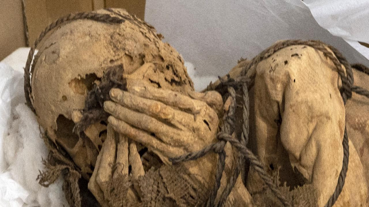 Peru'daki arkeologlar, 800 ila bin 200 yaşında olduğuna inanılan ve iple bağlanmış bir mumya ortaya çıkardılar.