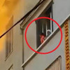 Henüz bilinmeyen nedenle çıkan yangında, evde bulunan anne çocuğunu da alarak pencereye çıktı.
