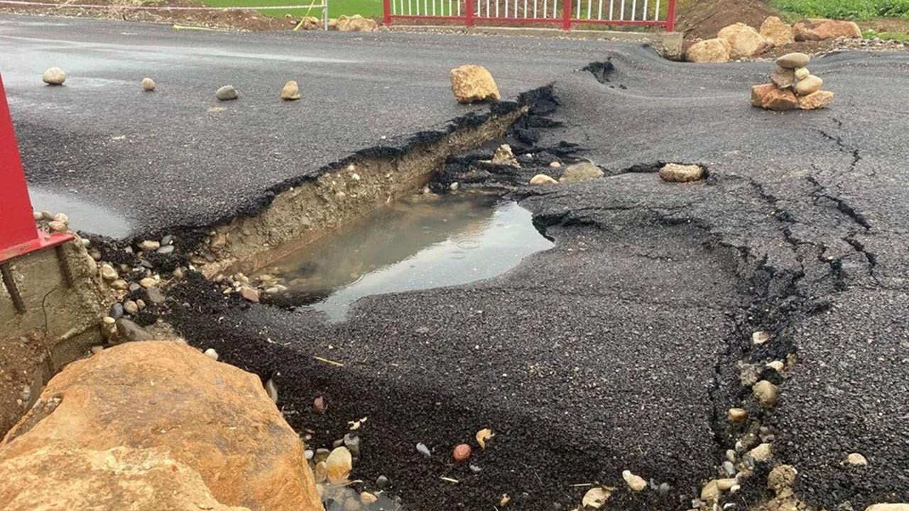 Osmaniye'de kuvvetli sağanak sonrası yol çöktü
