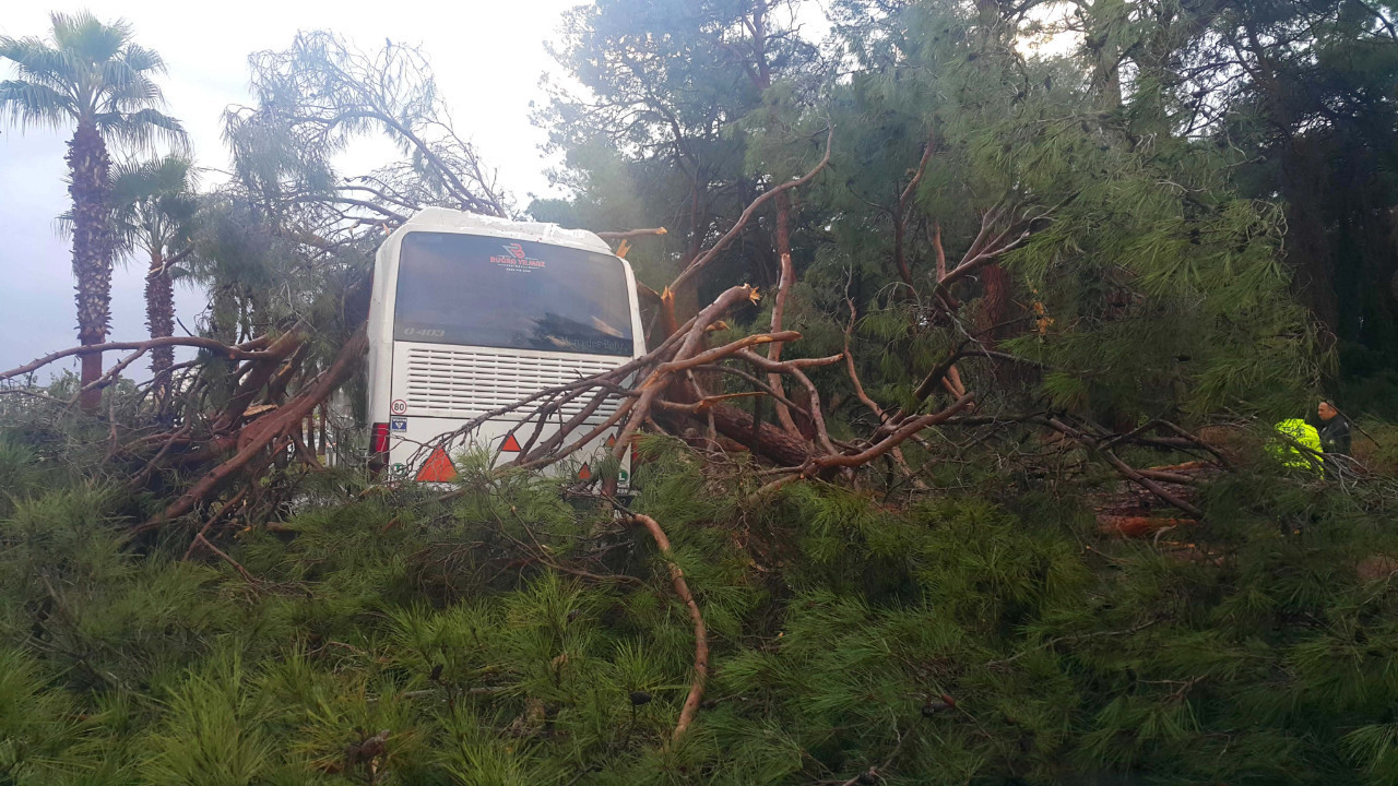Otel servisinin üzerine ağaç devrildi; yaralılar var!
