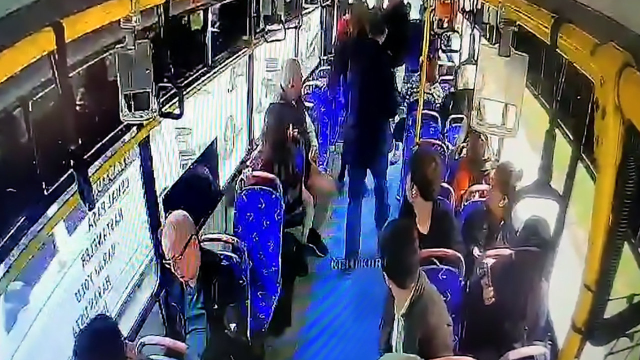 Otobüstekiler de şüpheliyi yakalayıp darbetti. Şoför, otobüsü park edip, polise ihbarda bulundu.