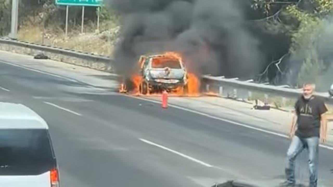 Pozantı ilçesinde Tarsus-Adana-Gaziantep (TAG) Otoyolu'nun Tekir-Eskonacık mevkisinde bir otomobil alev aldı.