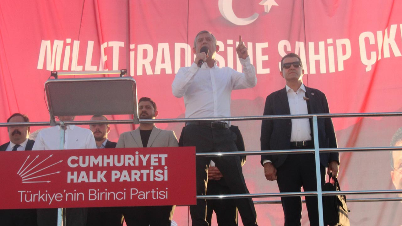 Ekonominin yıllardır bir kriz içerisinde olduğunu ifade eden Özgür Özel, "19 Mart darbesi ile birlikte zaten zorda olan ekonomi iyice dibe vurdu. 4.7 milyon gencimiz ne çalışıyor ne okuyor. Yoksullukta Avrupa birincisiyiz. Gıda enflasyonunda dünya birincisiyiz. Adalete güvende dünyada 117'inci sıradayız. 19 Mart'ta yaptıkları darbe ile 150 milyar dolar hasar yarattılar. Maalesef Mehmet Şimşek diyor ki, ‘Biz o rezervleri bugünler için biriktirdik.’ Rezervi kayısı için, asgari ücret için, emekli için biriktirmiyor ama Ekrem başkana darbe yapmak için biriktiriyor. Mehmet Şimşek'e de AK Parti'ye de yazıklar olsun. Dün Antalya'da, önceki gün Adana’da, ondan önceki gün Amasya'da aynı haykırış. Hükümet istifa, Erdoğan istifa. Çünkü artık bıçak kemiğe dayanmıştır." dedi.