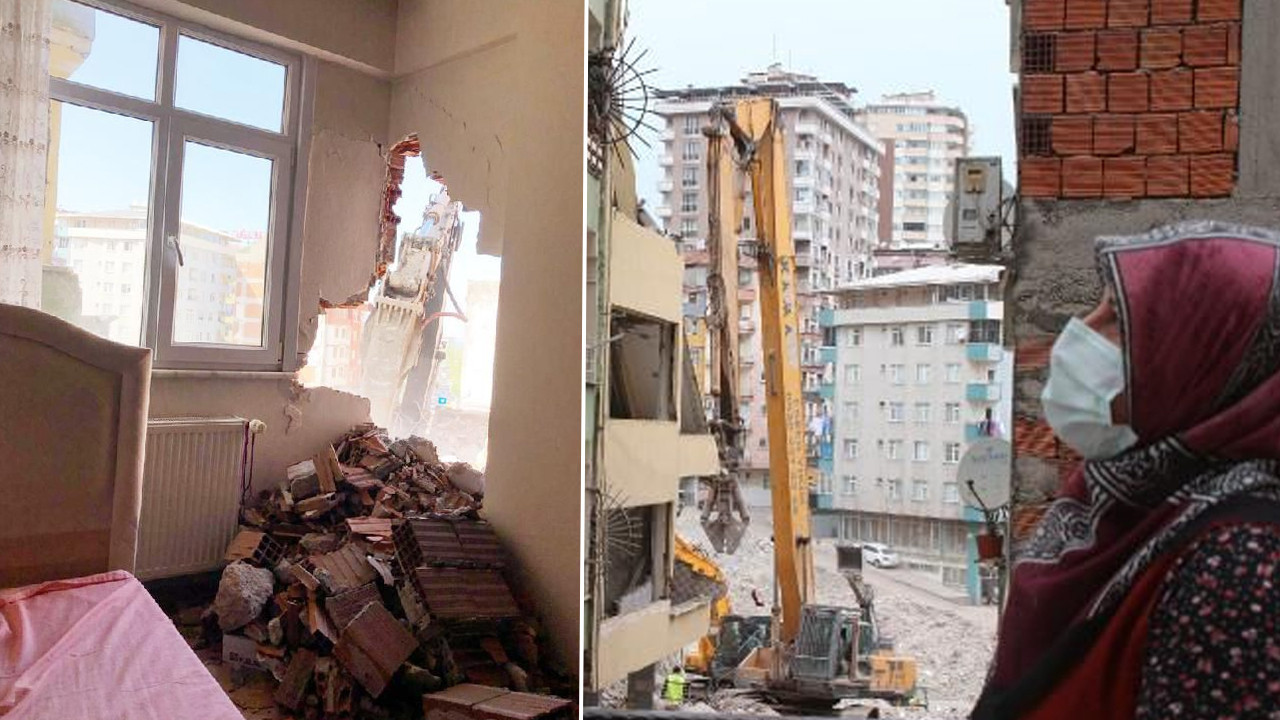 Süleyla Uluçay (62) ise, “4 gündür bu korkuyu yaşıyoruz. İş makinesi saat 08.00'da geliyor, biz binadan çıkıyoruz. 12.00'de tekrar girip biraz işlerimizi hallediyoruz. 14.00-15.00 gibi tekrar eve giriyoruz, iftarlıklarımızı hazırlıyoruz. Ev çok fazla sallanıyor, yan taraftaki bina yıkıldıkça evin içine giriyor zannediyoruz. Çok korkuyoruz. Hemen önümüzdeki bina da yıkılacak, biz bu apartmanda nasıl duracağız” ifadelerini kullandı.
