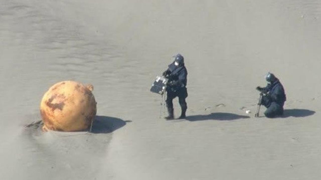 Japonya'da bir plajda bulunan gizemli top, ekipleri alarma geçirdi. Yerel basın, cismin bir tür deniz mayını olabileceğini belirtti.