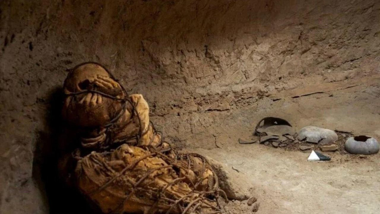 Peru'da bir yer altı mezarını kazan arkeologlar, elleri yüzünü kapatan ve tüm vücudu bir halatla bağlanmış olarak gömülen sıradışı bir mumya buldu.