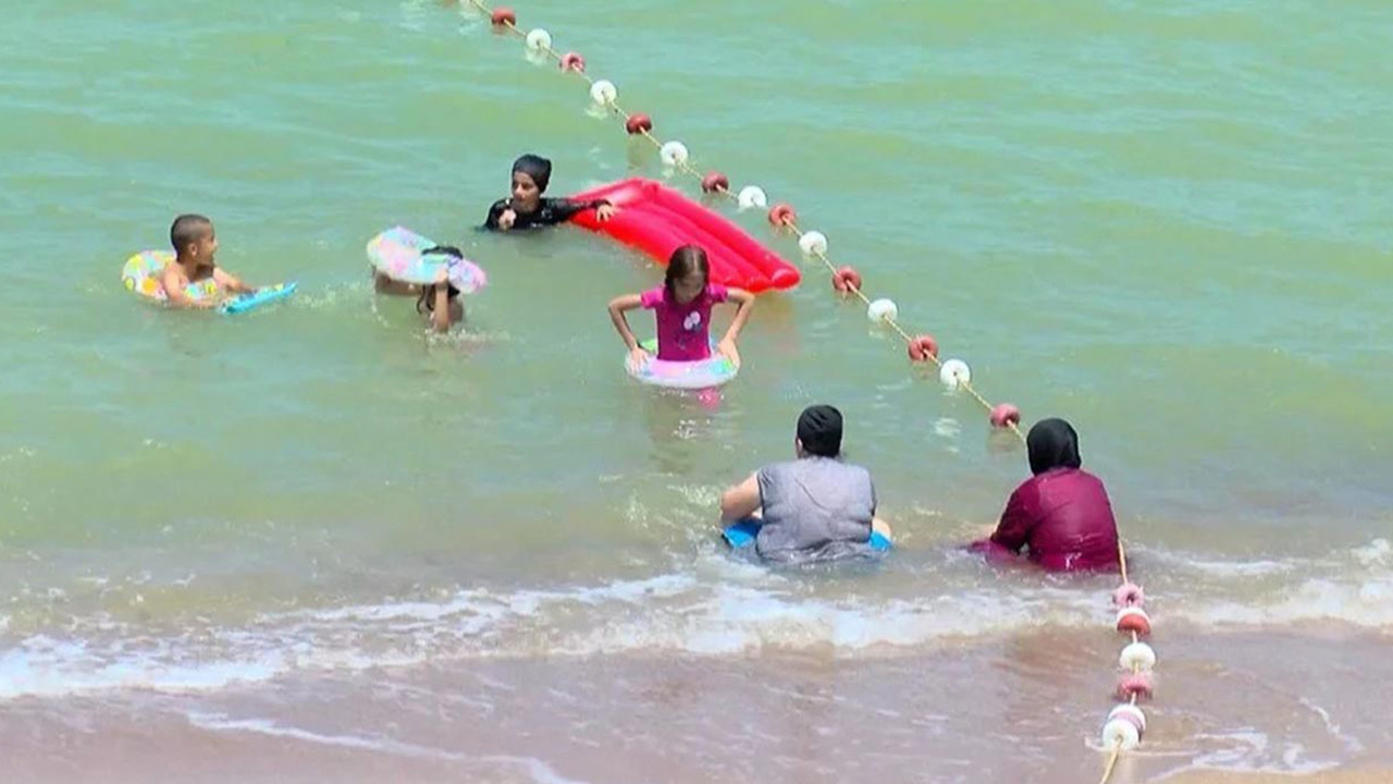 TEDİRGİN OLMALARINA RAĞMEN DENİZE GİRMEYE DEVAM EDİYORLAR