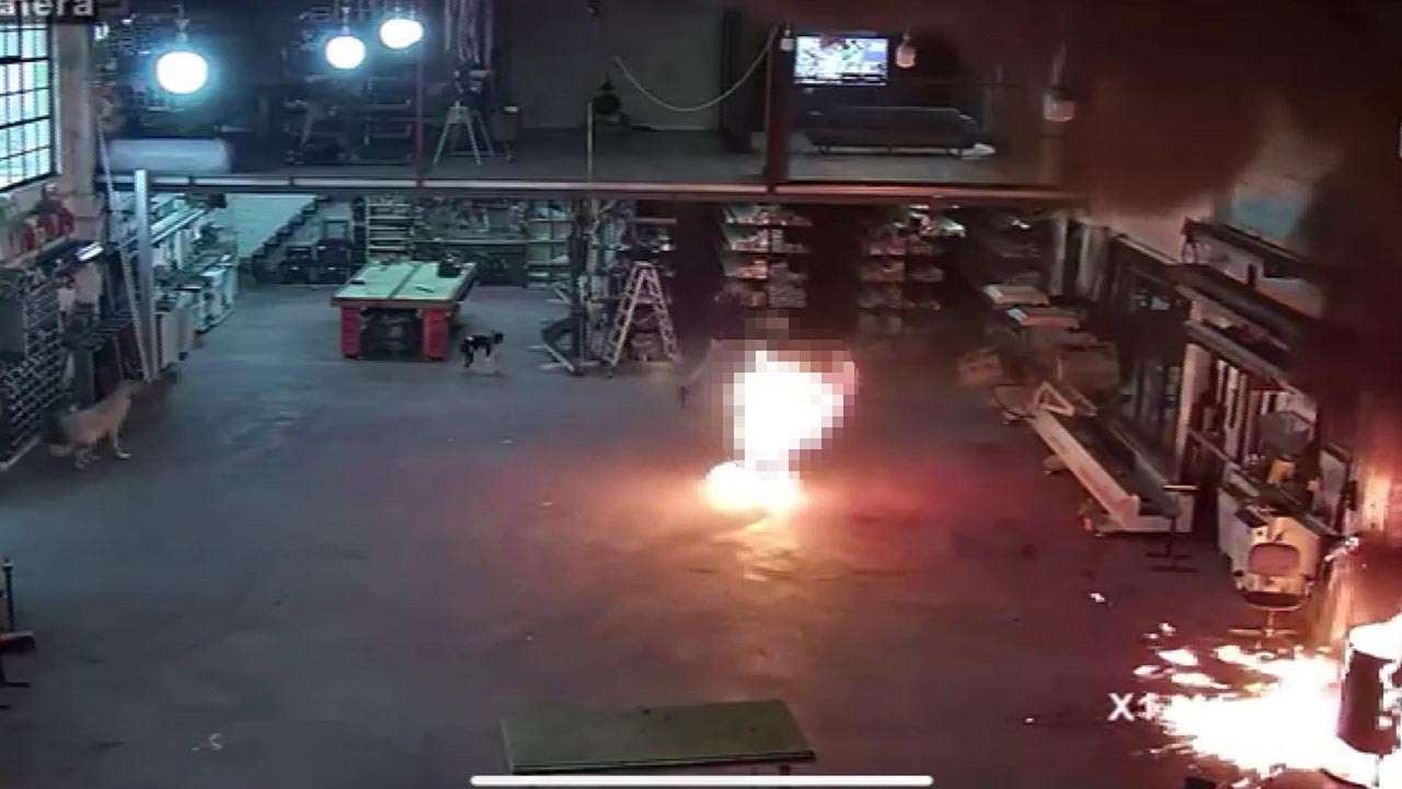 İstanbul Maltepe'de bir atölyede ısınmak için yakılan sobaya tiner döken Z.Ç., patlama sonucu alevlere teslim oldu. O anlar güvenlik kamerasına yansıdı.
