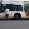 Bilinmeyen bir nedenle başlayan tartışma kısa sürede büyüdü. Şoföre bağıran adam otobüsün sileceklerini kırdı. Ardından da otobüse binerek şoförle tartışmaya devam etti.