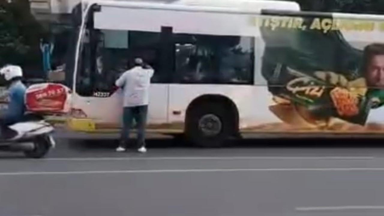 İstanbul Kadıköy'de bir yaya, İETT otobüsü şoförüyle tartıştıktan sonra otobüsün sileceklerini kırdı. O anlar cep telefonu kamerasına yansıdı.