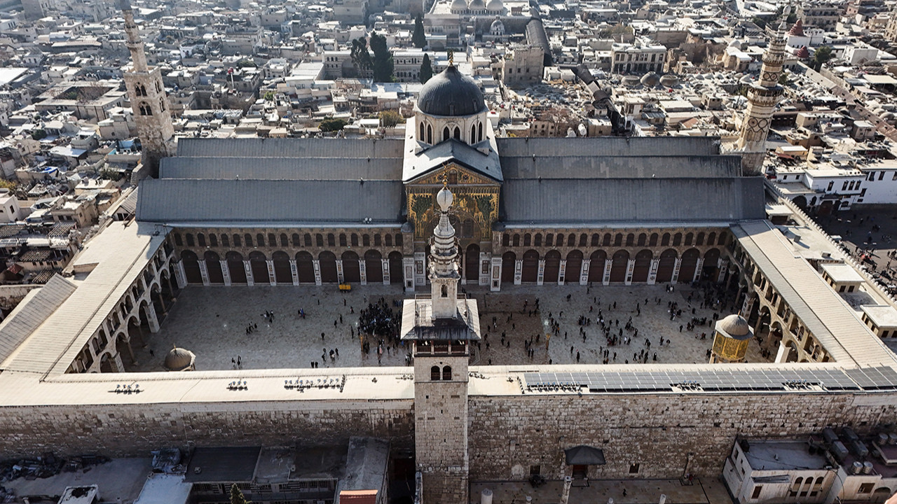 Suriye'nin başkenti Şam'da halk, Esad rejiminin devrilmesinin ardından ilk cuma namazını kılmak üzere tarihi öneme sahip Emevi Camii'nde toplandı.