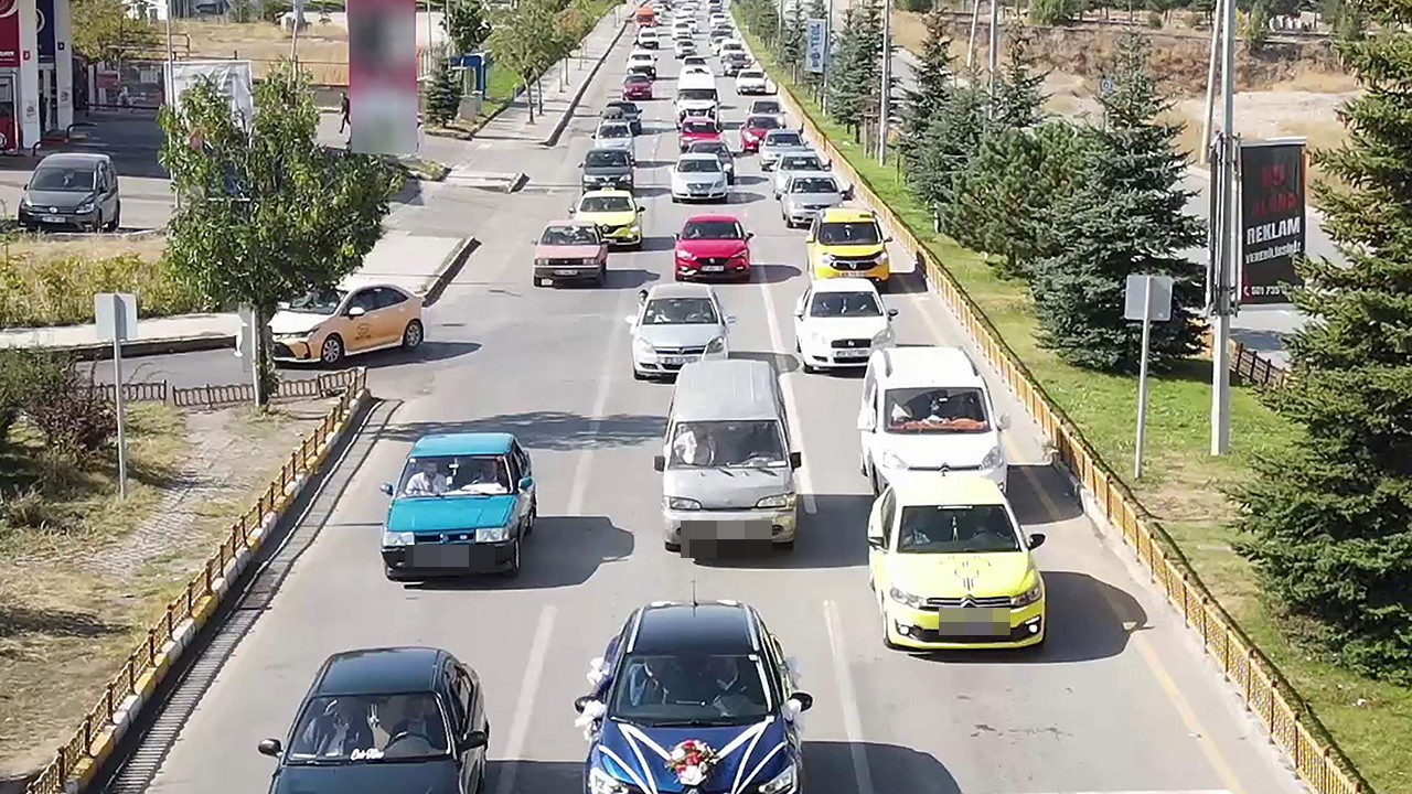 Trafik polisleri, şehir içi yolları kapatarak, diğer araçların geçişine izin vermeyen düğün konvoylarını, dron ve yer kameralarıyla takibe aldı.